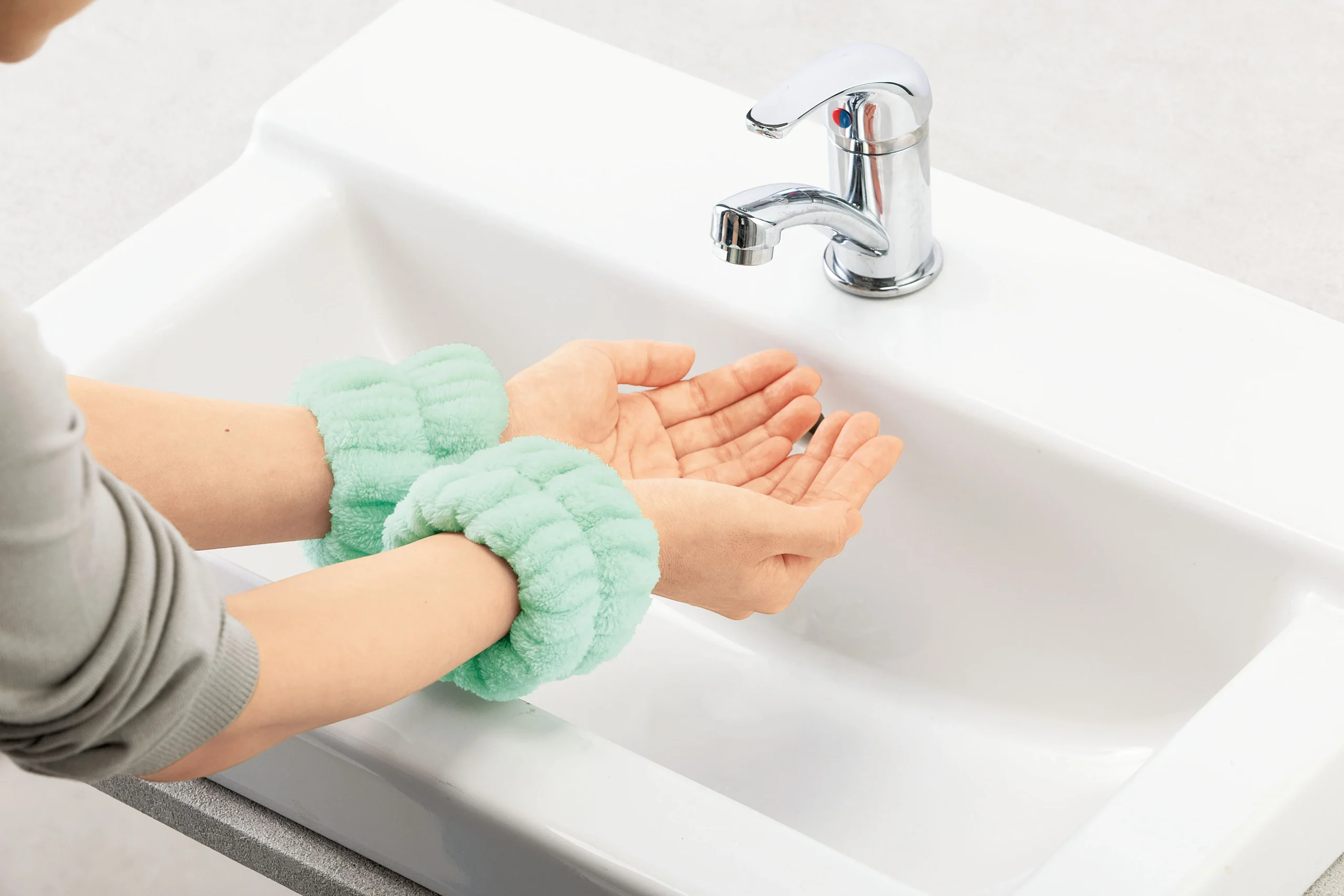 洗顔時や食器洗い時の袖濡れ防止に大活躍!吸水力抜群のマイクロファイバー素材のヘアバンドです。