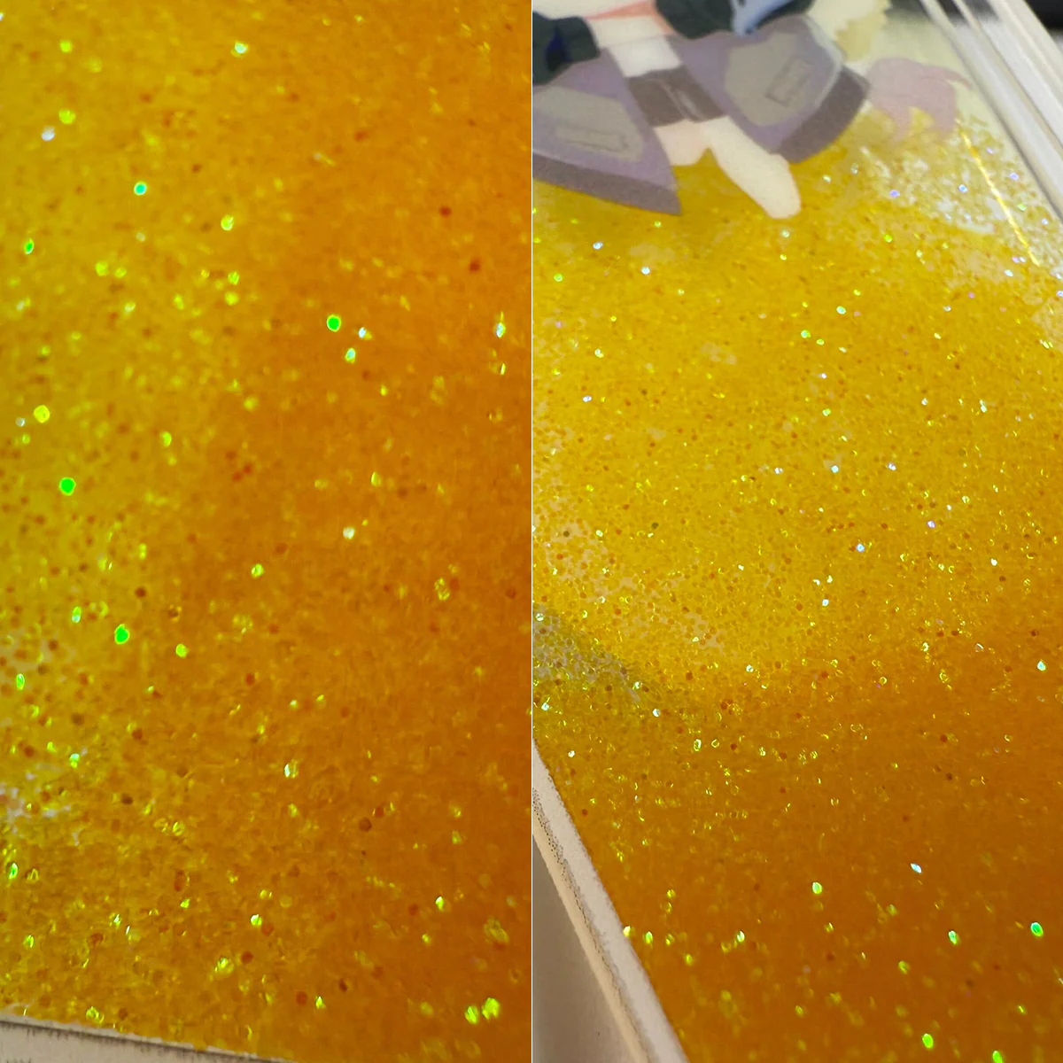 アクリルキーホルダーの中でラメがキラキラ輝く!3層構造になっておりアイデア次第で様々なデザインが楽しめます。ラメの種類は400以上!