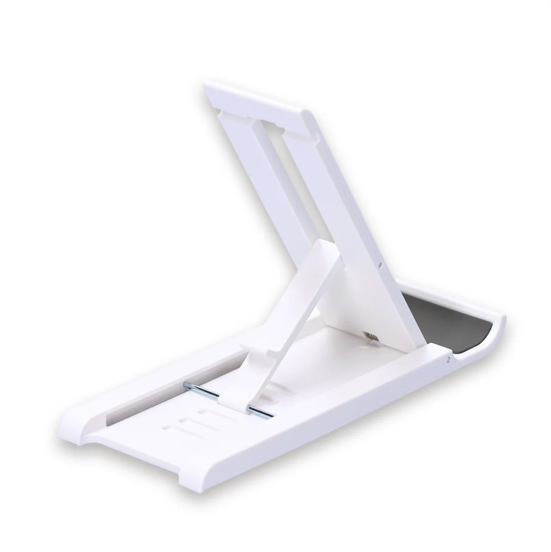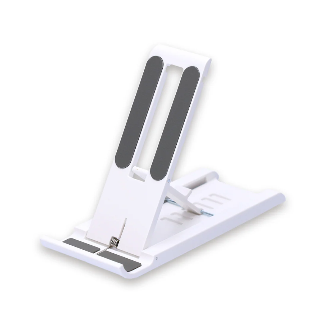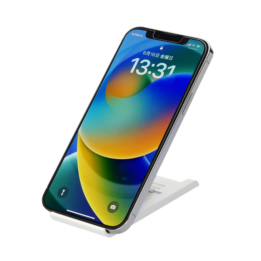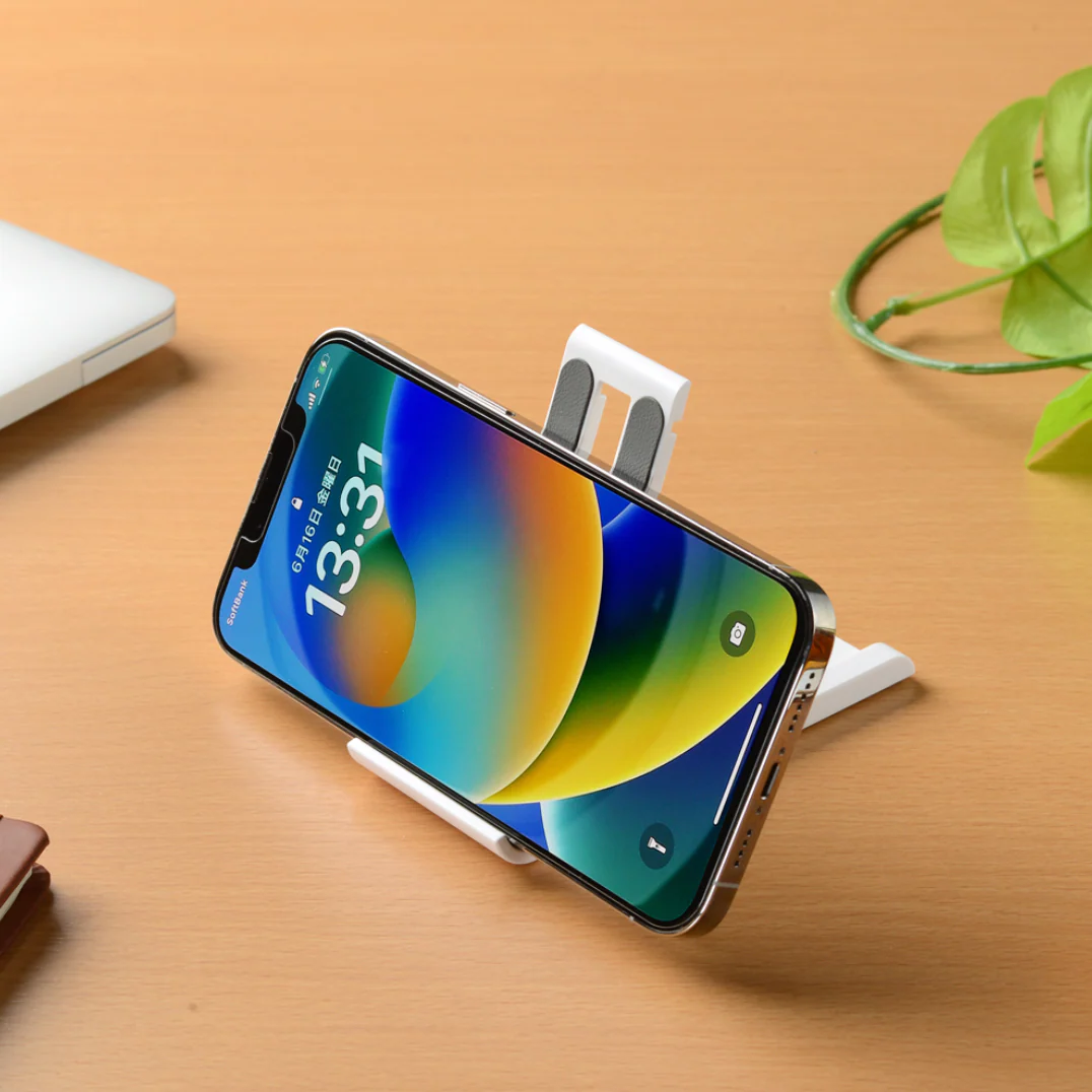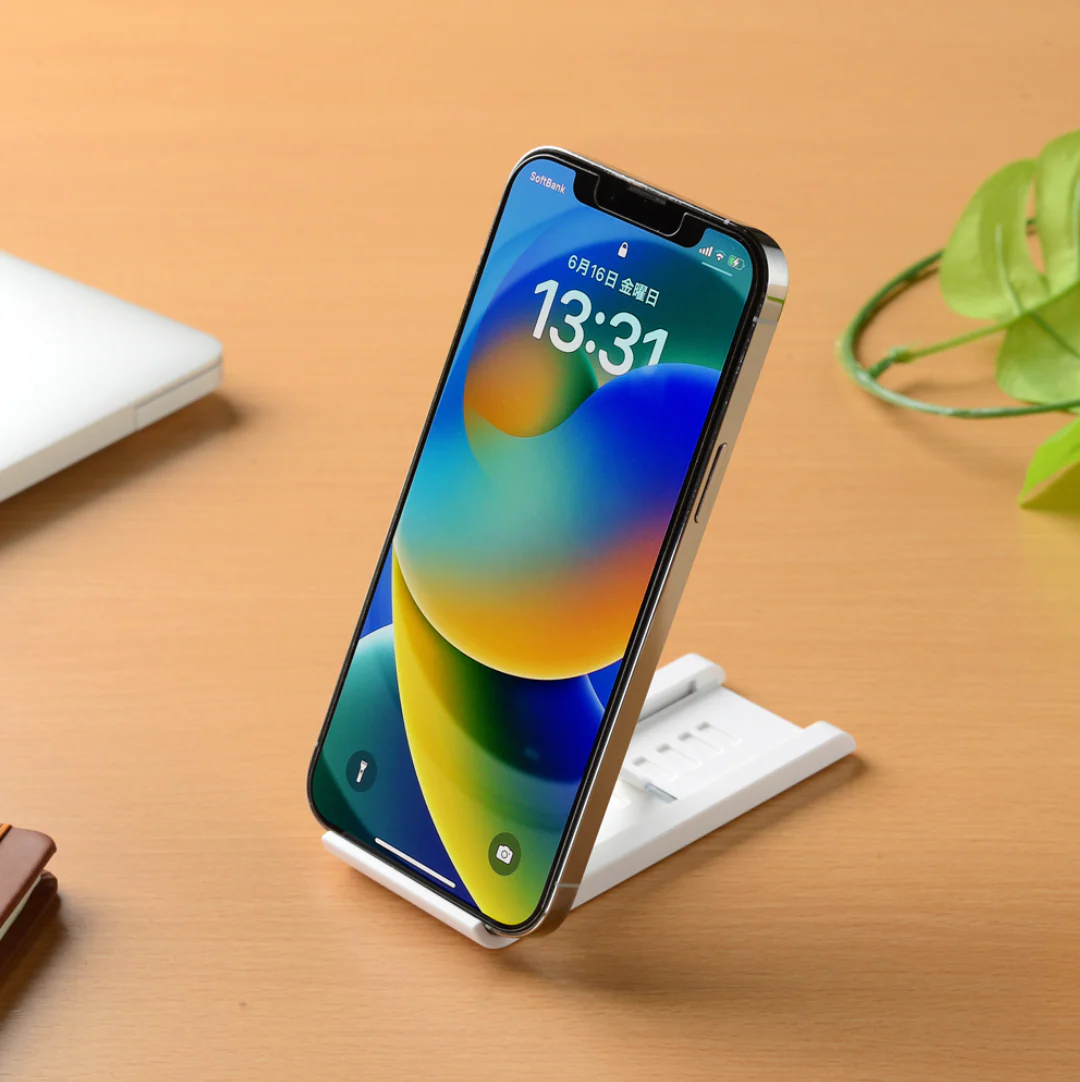 滑り止めで安定感のあるスマホスタンド。お好みの角度に調整可能。