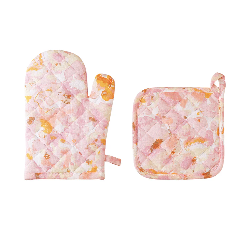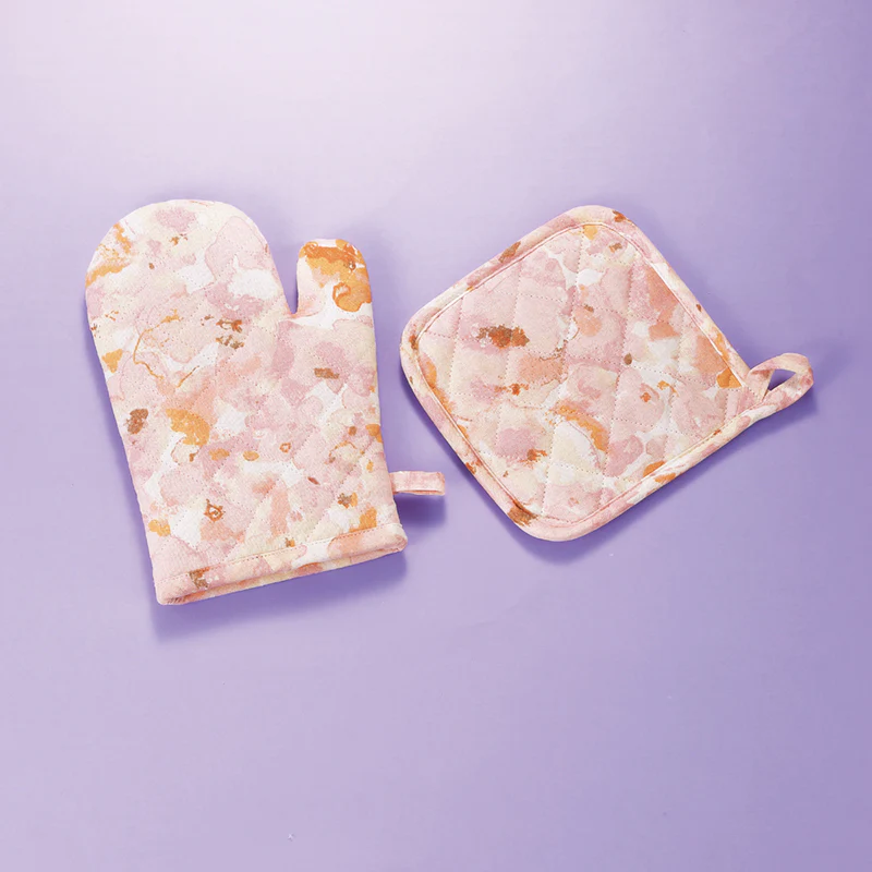 キッチンが明るく華やぐフラワー柄。どちらも厚めの生地なので扱いやすさも嬉しいポイントです。