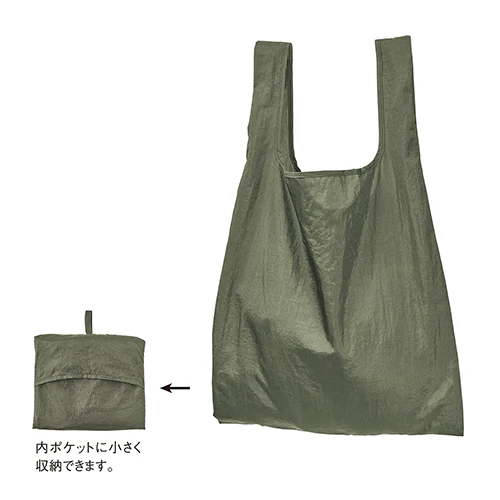 光沢感のある、さらりとした上質素材のエコバッグ。シワが目立たないため、たたまずくしゃくしゃと簡単に収納できます。